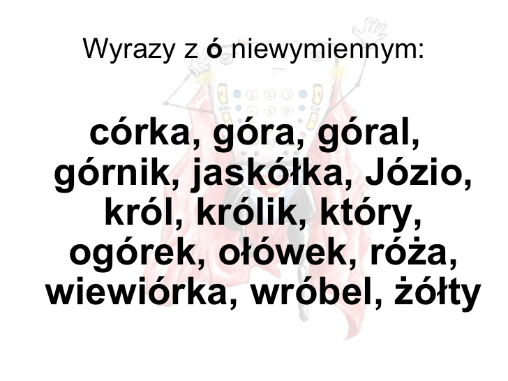 - prosze ułożyć i zapisać w zeszycie 5 zdań z "ó" niewymiennym (Poproszę o ładne, długie zdania) , przykłady wyrazów z "ó" niewymiennym w zeszycie