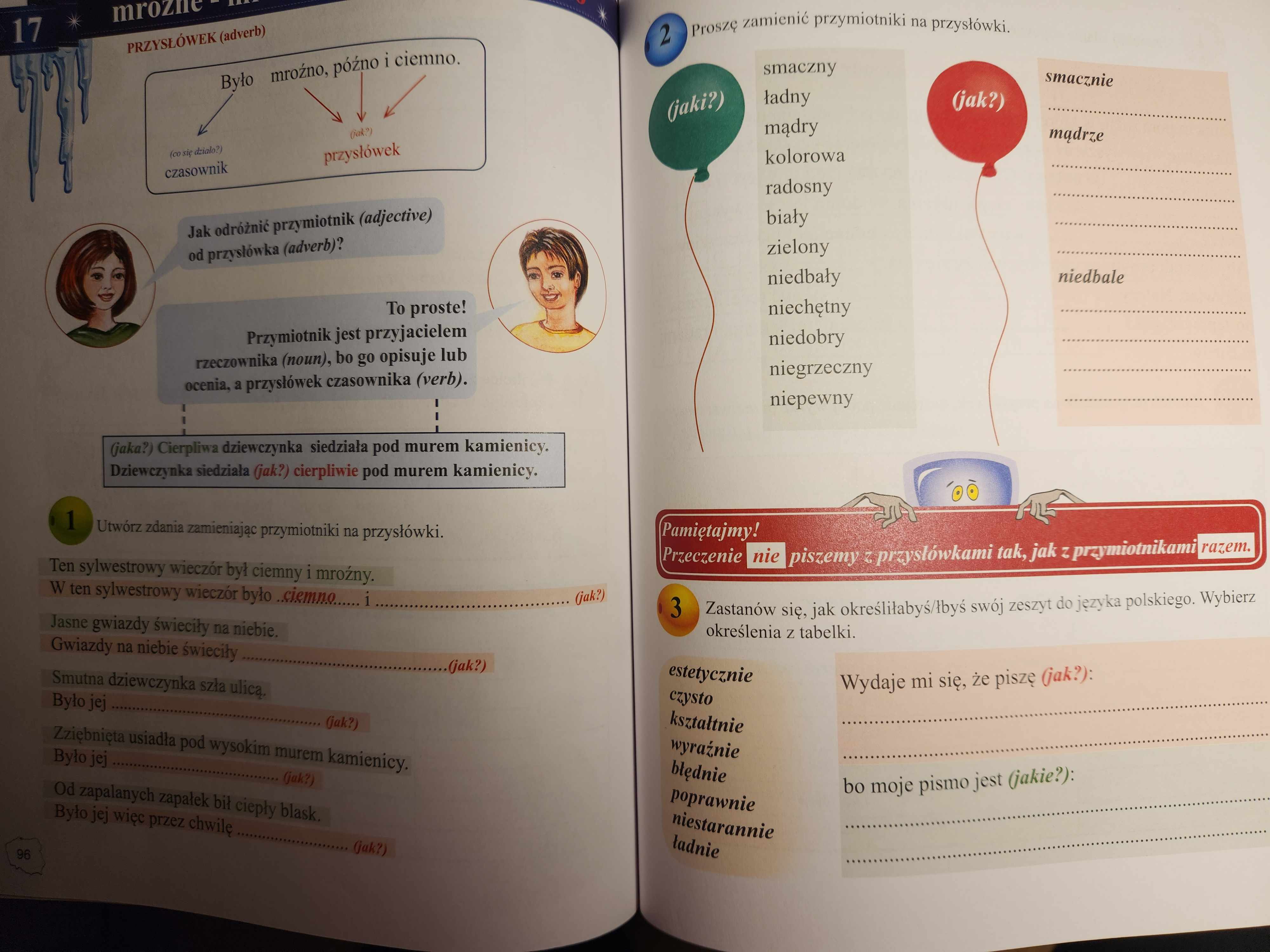 - powtórka o przysłówkach; wykonanie ćwiczenia nr 2 str 97 ( Ćwiczenia),